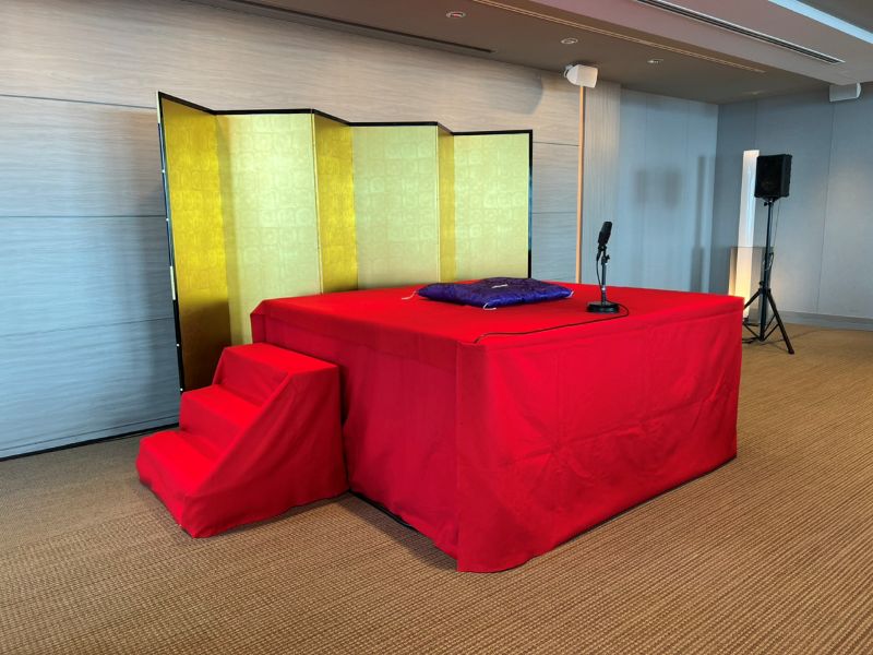 - 土足での登壇はご遠慮ください。土足での登壇の場合は緋毛氈をパンチカーペットに変更させていただき、金額変動いたします。