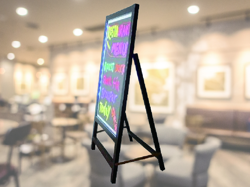 飲食店のメニュー案内やイベント会場の受付表示、販促案内などに適しており、来場者の目を引く演出が可能です!