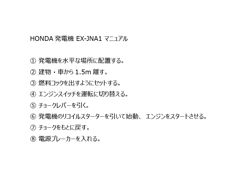 | 備考 | 定格出力や連続運転時間は使用する機器や負荷により変動します。 本体は重量がありますので、移動の際は必ず大人2名以上で行ってください。 在庫状況により、ホームページに掲載されている仕様や見た目と異なる商品や代替商品をご提案させていただく場合がございます。あらかじめご了承ください。 |
