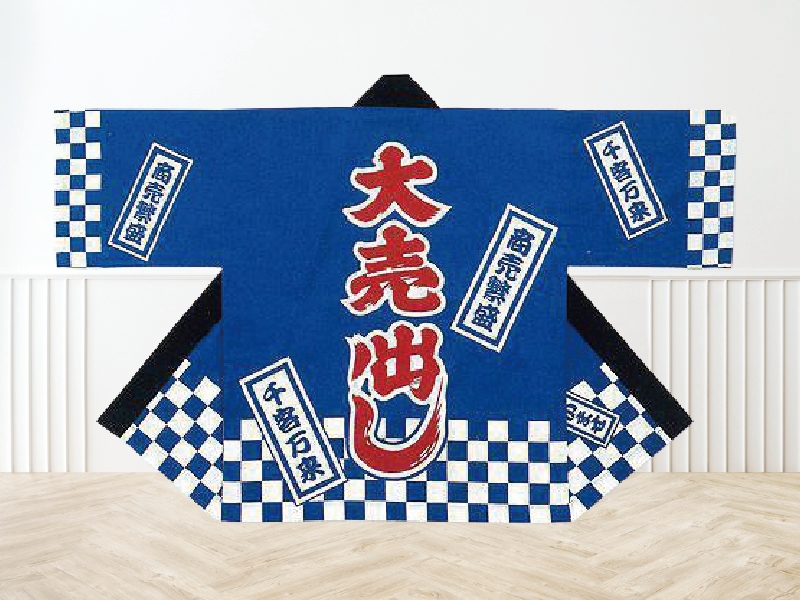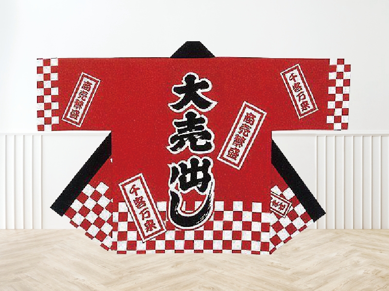 販促用ハッピは、「大売出し」などの目立つデザインで、売場や催事の盛り上げを分かりやすく伝えられる販促用の衣装です!