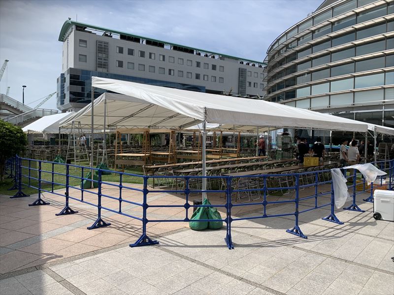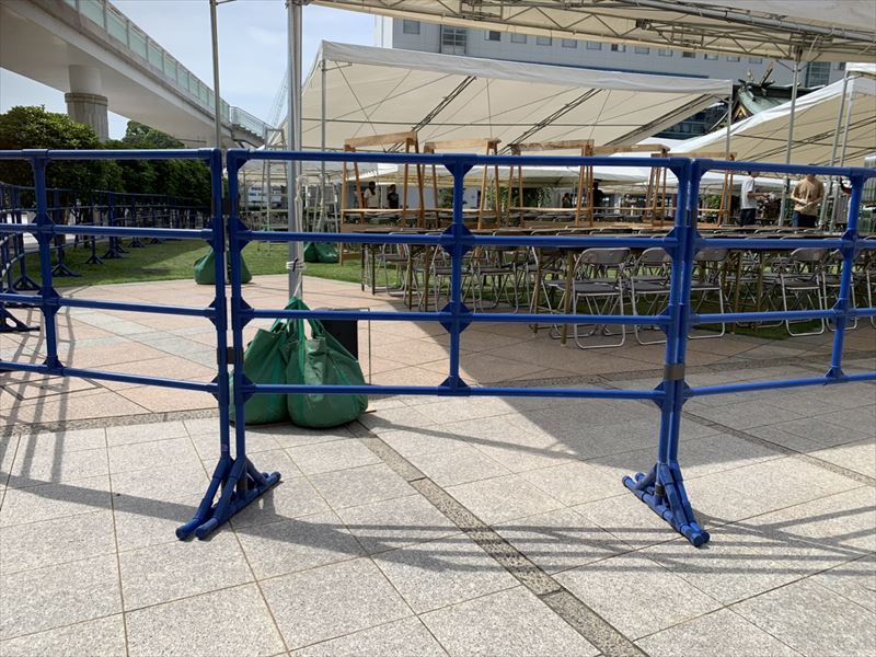 ・特別な工具なども一切必要なく、足の向きをフェンスと垂直にするだけで自立して使用できる簡単設計です。1枚1枚の設置時間も短いため設置も撤去も短時間で対応可能です!